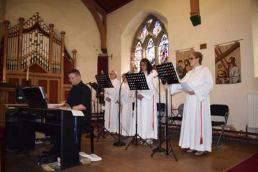 The long awaited day finally arrived. Thanks to the fantastic work of Sreve & Stuart Fear of RN Fear & Sons (Stonemasons) Ltd and their associates Ester & Lia at Off the Wall Stained Glass we were able to formally celebrate the re- dedication and blessing of our beloved Te Deum East Window on Sunday the 23rd July 2023.